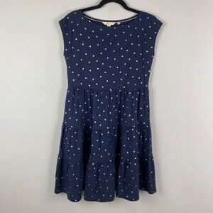 Boden Romaine Tiered Jersey Dress Navy and Gold Polka Dot US Size 2P