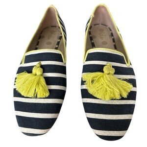 Boden Rowan Navy Blue Striped Yellow Tassel Slipper Loafers Size 8.5