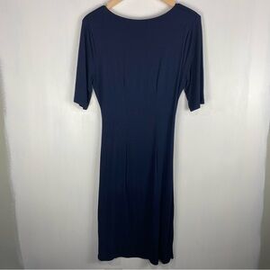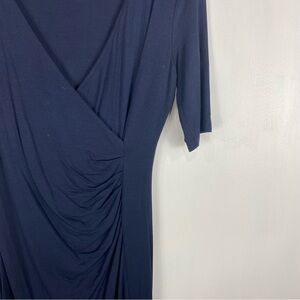 Boden Ruched Fitted Soft Stretchy Jersey Knit Short Sleeve Midi Dress Navy 6
