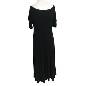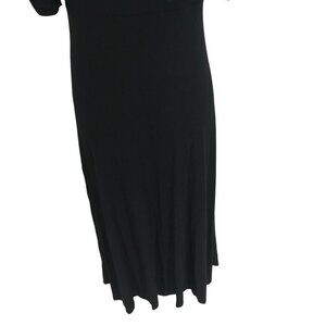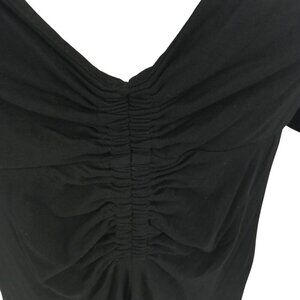 Boden Ruched Front Jersey V Neck Black Midi Dress Size 8R Stretch Short Sleeve