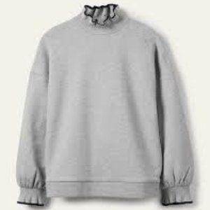 A pull-on-and-go sweatshirt that looks effortlessly elegant has long been at the top of our must-have list. So we created this one. Semi-fitted for comfort and crafted from a sustainable cotton blend, it's all about the easy shape and statement-making blouson sleeves. The dropped shoulders have a relaxed feel, while a high neck and stretchy cuffs combine ribbing (which keeps things cosy) with a fluted edge for a modern finish.