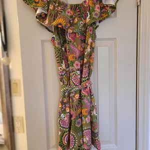NWT Boden UK short jumpsuit with adjustable ruffle neckline, pockets, and bellt.