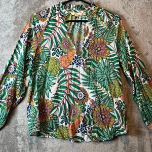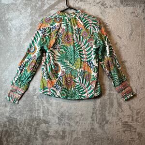 Boden Ruffle Smocked Cuff Tropical Pineapple Print 100% Cotton Top Size 6 Green