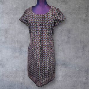 In excellent condition Boden Rust & Blue Geometric Corduroy Short Sleeve Shift Dress Size 6 Women's.