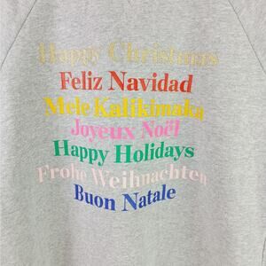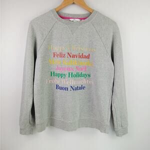Boden SZ M Merry Christmas In Several Languages Spell Out Gray Sweatshirt NWOT