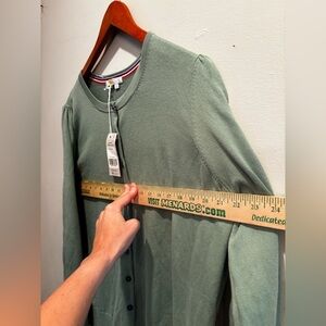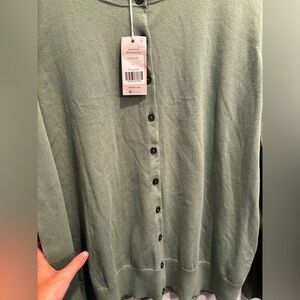 Elegant sage green cardigan with button-up front. Ideal for layering.