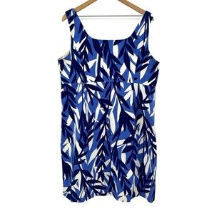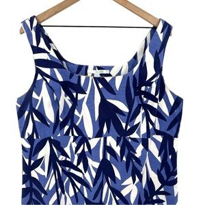 Boden Savannah Leaf Print Cotton Sheath Dress -Blue / White -Size 16 Long / Tall
