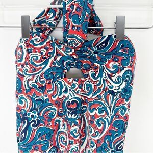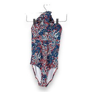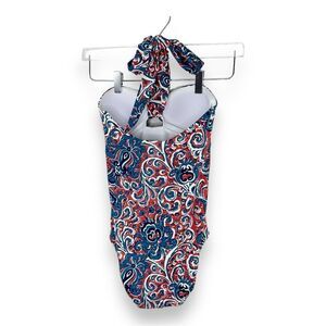 Boden Scarf One-Piece Bandeau Botanic Swimsuit, Dahlia Red/Botanic Sz 2 Travel