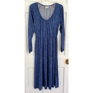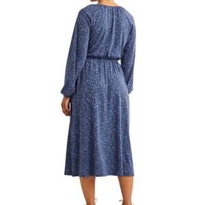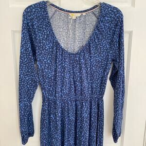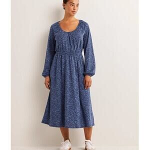 Boden Scoop Neck Jersey Midi Dress Riviera Blue Floral Elastic Waist Long Sleeve