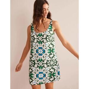 Boden Scoop Neck Shift Dress Trekking Green Opulent Pome Floral Size 6L