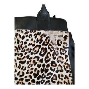 Cow hide leopard print leather tote. Italian leather. 3 compartments on the inside. Several inside pockets as well as outside zipper pocket. Very room.