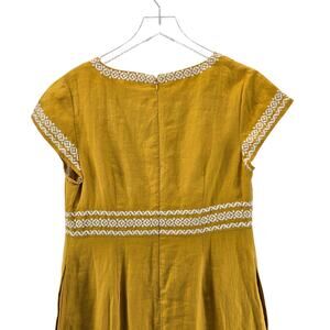 Boden Shift Dress Women 10 NEW 100% Linen Shift Mini Tuscan Yellow Embroidered