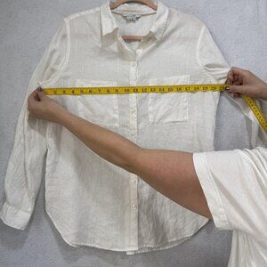 Boden Shirt Women Large White Button Front Long Sleeve 100% Linen Pockets