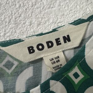 Boden Short Sleeve Column Midi Dress Sz 6 Bright Emerald Azure Geo Bold Classic