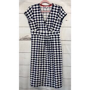 Boden Short Sleeve Dress Navy White Size 10L Easy Comfy