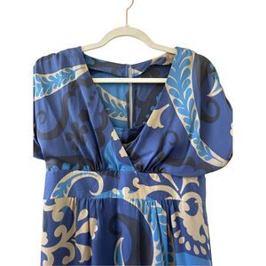 Boden Women’s Blue Short Sleeve Paisley Print Silk Shift Dress Size 8