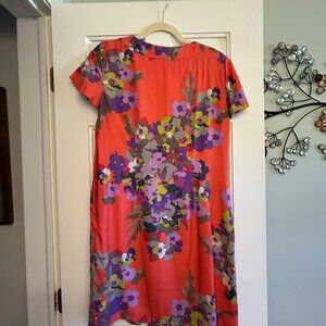 Coral floral Boden silk dress with beaded neckline. Great condition!