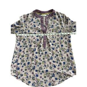 Boden Silk Floral Blouse Size 8 Peasant Boho Tunic Workwear Top Classic Chic