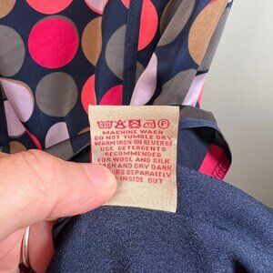 Boden Silk Sheath Dress Size 12 Polka Dot Blue Retro Preppy Work Office Career
