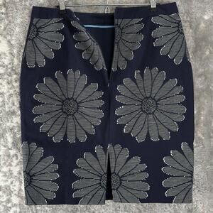 Boden Size 12 Floral Garden Party Skirt A-Line Stretch Cotton Blend Navy