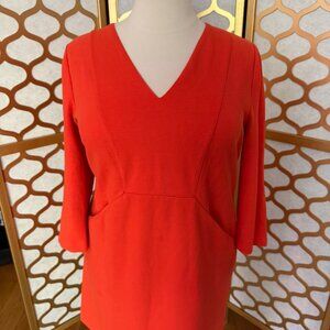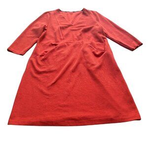 Boden Size 16 Orange Bronte Ottoman 3/4 Sleeve V-Neck Knee Length Shift Dress