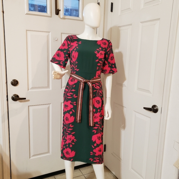 Boden Size 2 Elegant Floral Green and Pink Dress