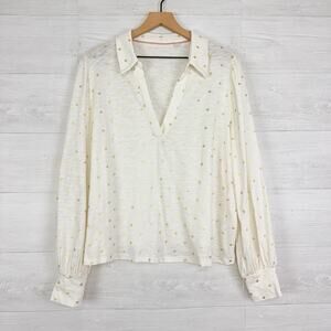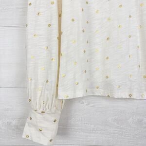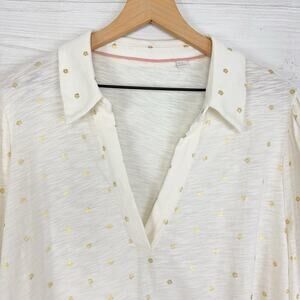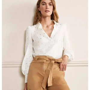 Boden Size 20/22 XL Long Sleeve Top Collared Notch Neck Cotton Ivory Gold Flower