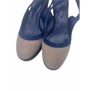 Boden Size 39 (US Size 8) Dark Blue & Beige Leather Slingback Wedges