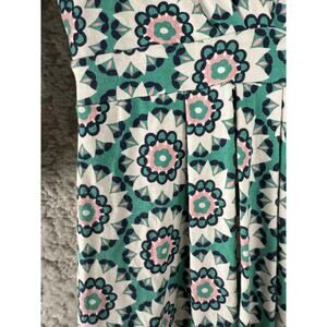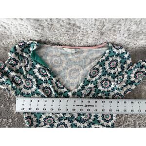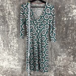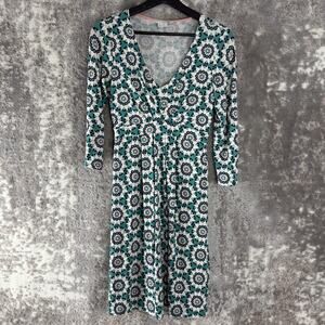 Boden Size 4L Geometric V Neck Fit Flared Mini Dress Green 3/4 Sleeve Pullover