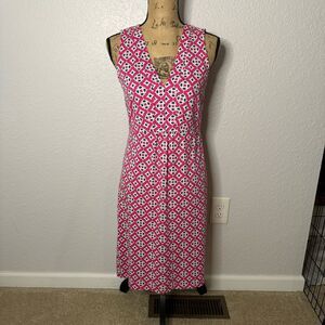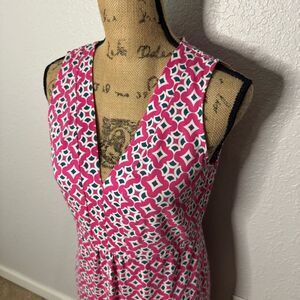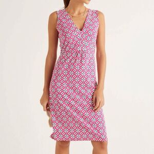 Boden Size 6 Eden Pink Geo Print Cotton Blend Jersey Sleeveless Dress V Neck
