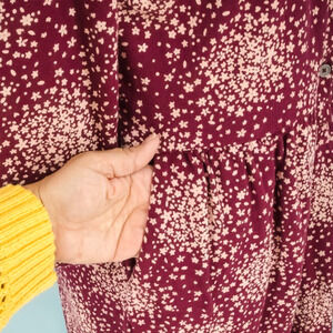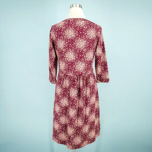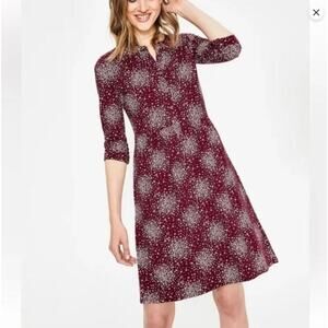 Boden Size 6L Long Briar Burgundy Red Floral Print Button Long Sleeve Knit Dress