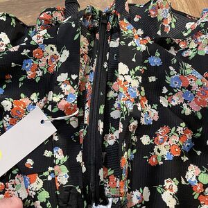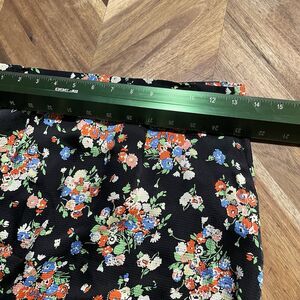 This Boden skirt is a must-have for any fashion-forward woman. The satin fabric gives it a luxurious feel, while the ruffle accents and mid-rise cut add a touch of femininity. Perfect for any occasion, whether it be a casual day out or a fancy party, this mini skirt is versatile and stylish. The lightweight and concealed side zip make it easy to wear and care for, while the machine washable fabric ensures long-lasting wear. The black floral pattern adds a touch of bohemian and hippie vibes, making it perfect for any music or art festival. This skirt is available in size 2 and is suitable for regular-sized women.