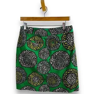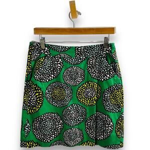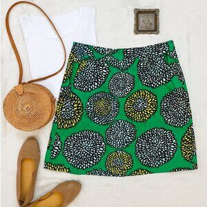 Boden Skirt Womens 6 Cotton Floral A Line Green Knee Length Pockets Zip Back
