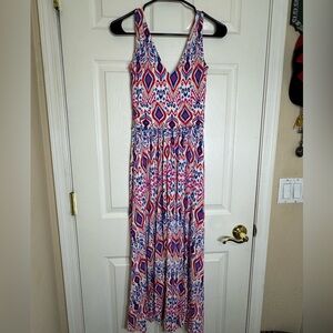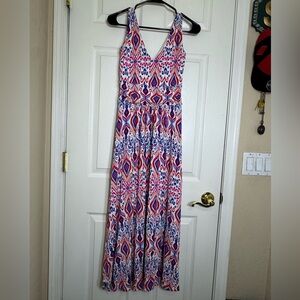 Boden Sleeveless Maxi Dress US 2P Pink Blue Ikat Print EcoVero Boho Summer