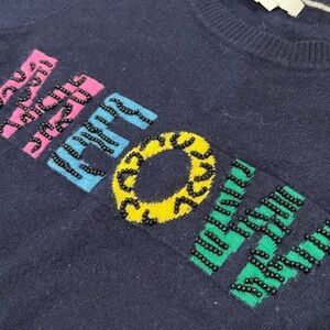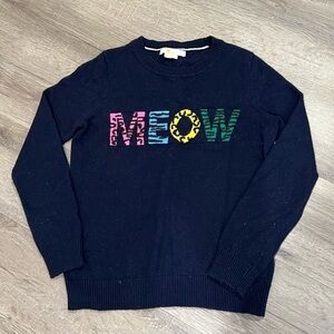 Boden Small Women’s Navy Wool Blend MEOW Cat Liver Cute Chic Sweater Winter Fall
