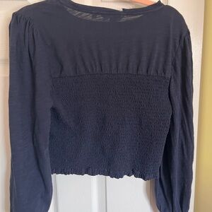 Boden Smocked Blue Crop Blouse