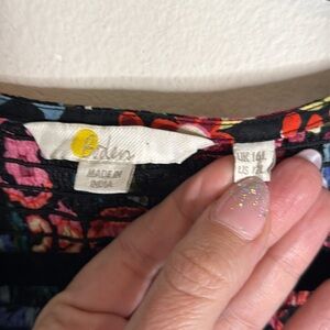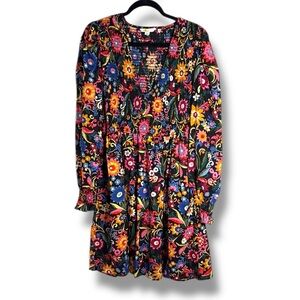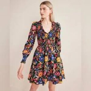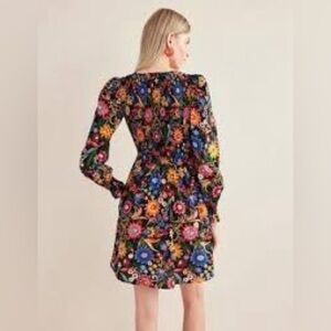 Boden Smocked Bodice Dress in Black Gardenia Pop Size 12 Long