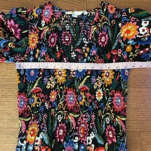 Boden Smocked Floral Ruffle Top 2 Colorful Bright Cottagecore Fairy