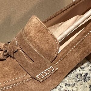 Brand new, with tags heeled penny loafer with tassel details and block heel