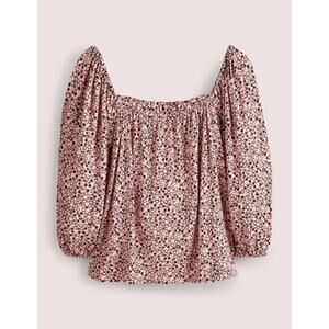 Boden Square Neck Swing Jersey Top Size 6 Milkshake Floral Pebble Women Relaxed
