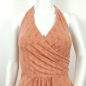 Boden St Lucia Halter Dress Size UK 14R US 10 R Orange White Geometric Printed