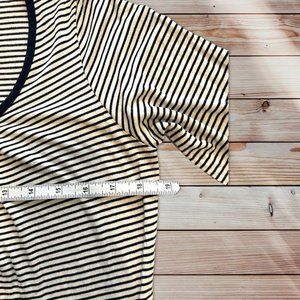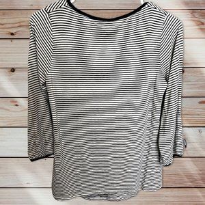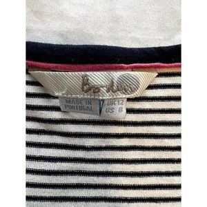 Great condition shirt from Boden. Navy blue and white stripes with a 3/4 length sleeve. Pleated around the neckline. Fabric is super soft and has some stretch to it. Great for dressing up or down. No rips, stains, or tears. No cosmetic damage.