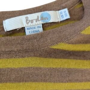 Boden Striped Brown & Chartreuse Cashmere blend wool sweater US 6 ~ flaw