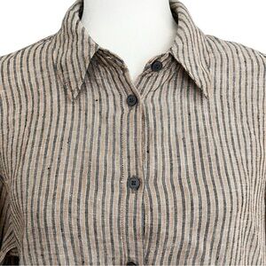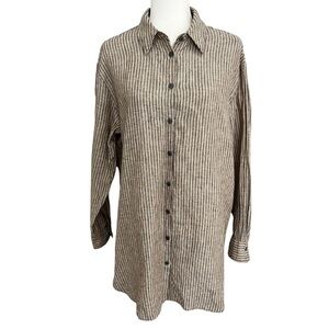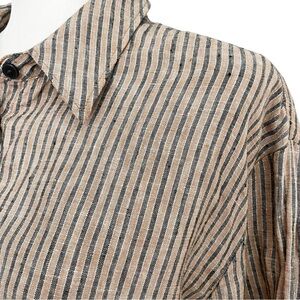 Boden Striped Linen Metallic Tan Relaxed Button Down Shirt Size 10 Regular Tunic