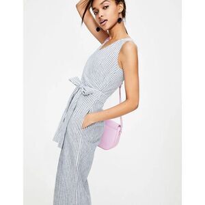 Linen-cotton jumpsuit from Boden in excellent condition. Soft cotton lining on torso; great for hot weather. See measurements in pictures. Belt missing.