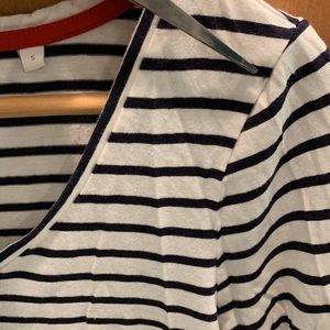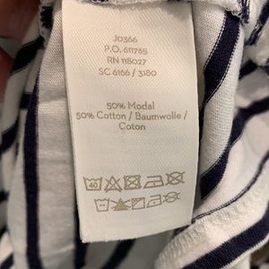 - beautiful soft cotton blend jersey fabric in navy/ivory stripes
