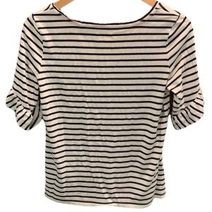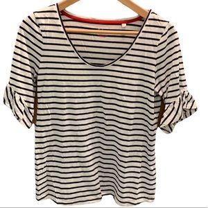 Boden Supersoft Frilled Cuff Tee Ivory/Navy, Sz Small