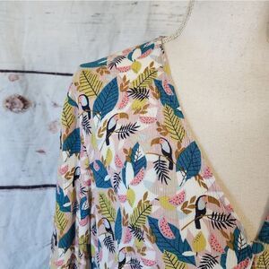 Toucan Print in Milkshake with pink, yellow, and blue. In good condition.