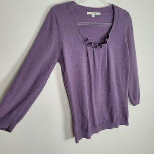 Boden Sweater 3/4 Sleeve Pleated Front Ruffle Round Neck Purple Size 8