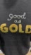 Boden crew neck sweater in black with embellishment “Good as GOLD” in white/black yarn and gold sequins. Dry cleaned.